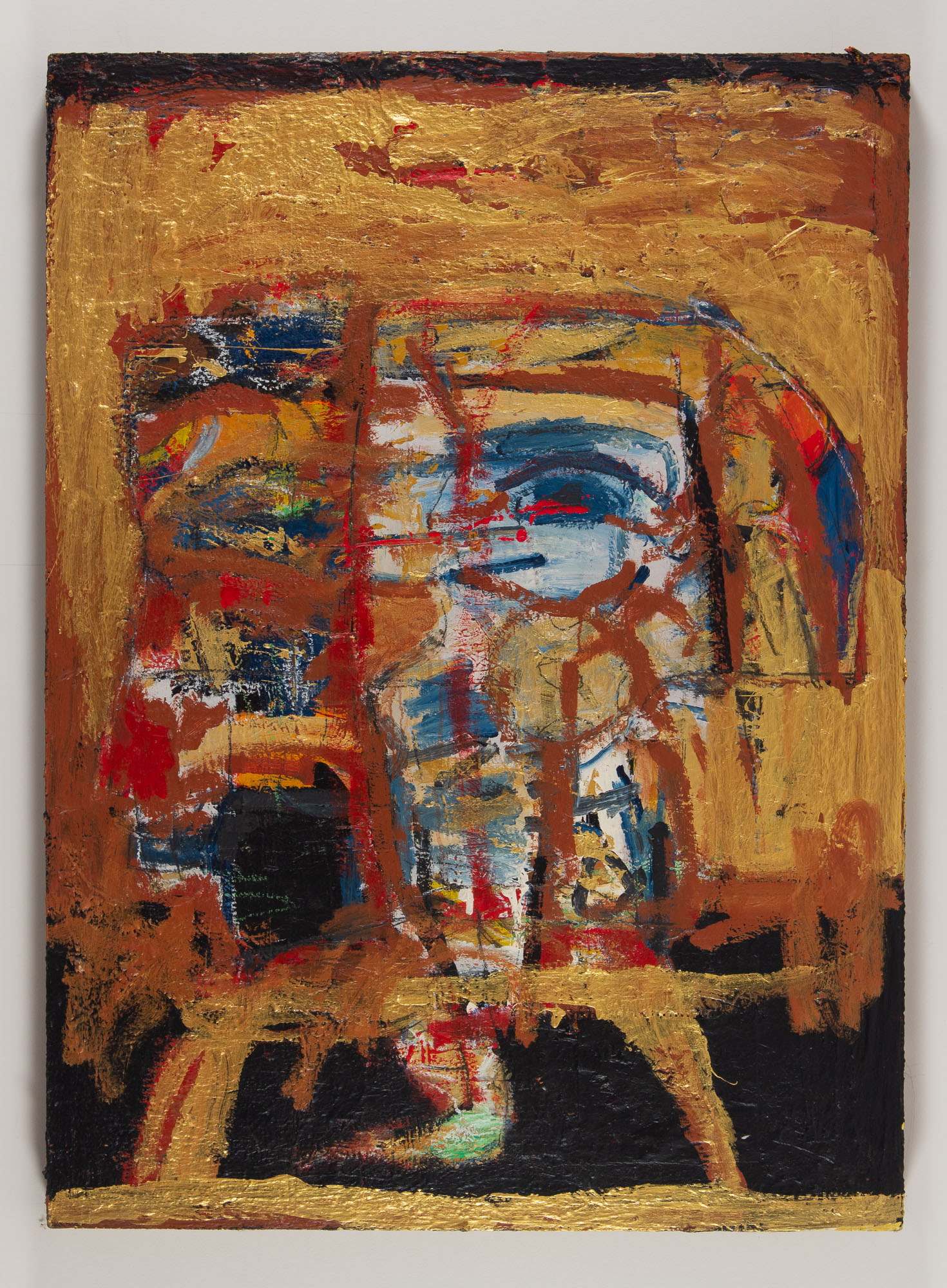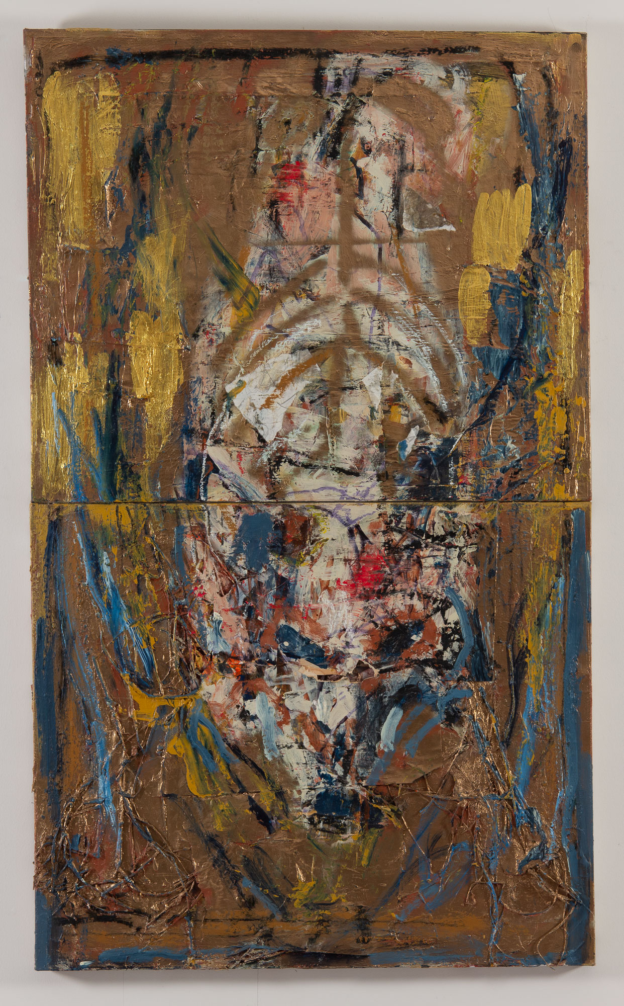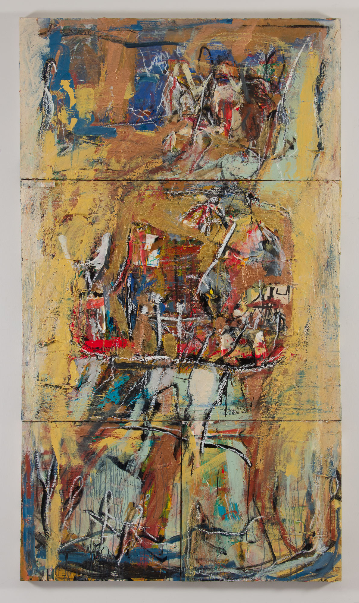 Pehr Smith, Totem, 2018, acrylic, oilstick, and paper collage on wood panel, 66 x 48 in.